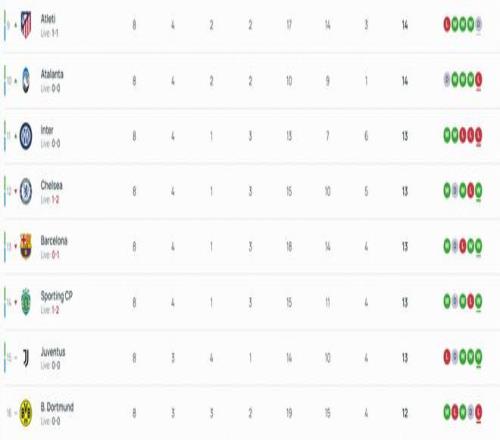 歐冠聯(lián)賽階段最后一輪18場同開,賽前6-13名的八支球隊(duì)同積13分,對前八的直通名額展開了激烈爭奪。不過半場過后...