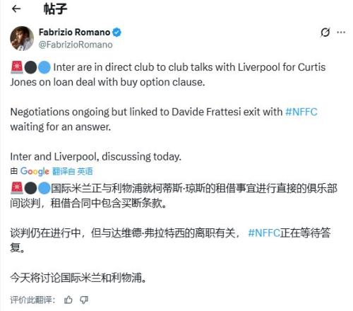 羅馬諾在X(推特)上表示:“國際米蘭正與利物浦就柯蒂斯·瓊斯的租借交易進行了俱樂部層面談判,該交易包含購買選擇權條款。談判正在進行中,但與弗拉泰西的離隊相關,諾丁漢森林正在等待答復?!?/p>