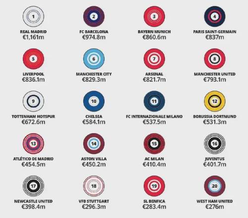 但無論如何,這份財富榜告訴我們如今一場職業足球比賽,不再像是一場90分鐘的競技,而是一場永不停歇的商業演出。