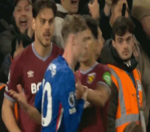沖突中,西漢姆聯后衛托迪博上來鎖喉佩德羅,中途希臘國腳馬夫羅帕諾斯還一巴掌想扇帕爾默,慶幸的是帕爾默反應敏捷迅速躲開,才免遭對手偷襲。而佩德羅再次為隊友出頭,怒推馬夫羅帕諾斯。