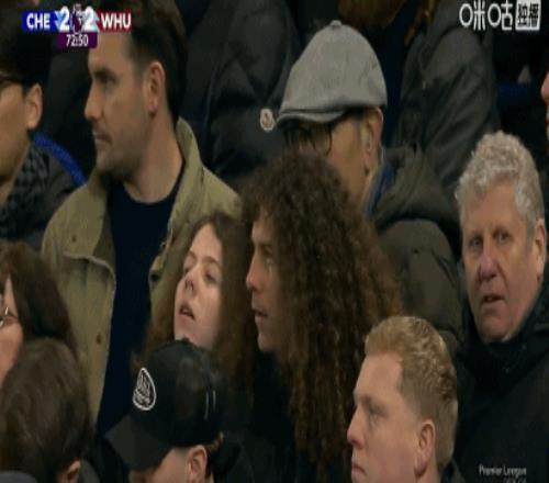 第74分鐘,略顯喜感,看臺球迷留著庫庫雷利亞同款發型