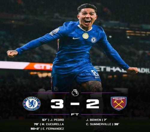 全場戰(zhàn)罷,切爾西主場3-2逆轉(zhuǎn)絕殺西漢姆聯(lián),上演讓二追三驚險拿下3分,積40分來到英超第4,豪取各項賽事5連勝!