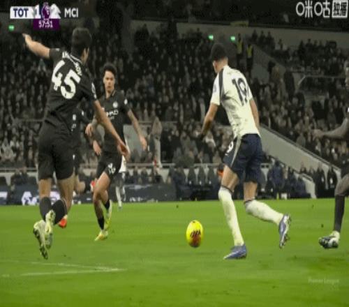而本場比賽,當值主裁的判罰也引發不小爭議。熱刺的首粒進球疑似犯規在先,當時比賽進行到第53分鐘,索蘭克反越位突入禁區后,在曼城球員的圍追堵截情況下,射門得手。但慢鏡頭回放顯示,索蘭克射門前疑似踢到曼城后衛格伊的腿,從而讓格伊“被動”射門入網。