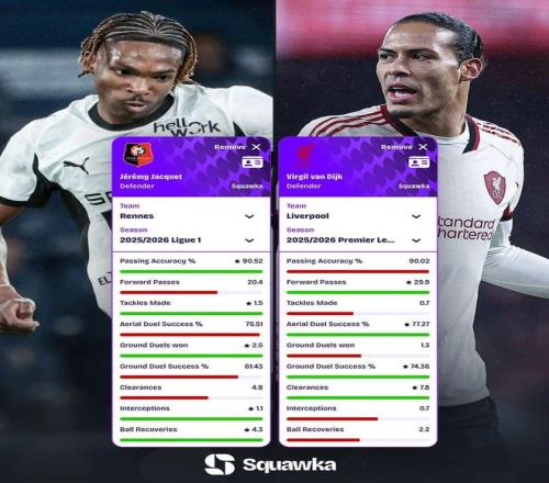 2025年初,因雅凱在法乙表現(xiàn)出色,急于保級的雷恩提前召回雅凱,為此支付了90萬歐元違約金。雅凱在賽季后程11次首發(fā),幫助雷恩成功保級。本賽季上半程,他在法甲首發(fā)19次,就讓利物浦下定決心“預(yù)購”未來。雅凱在法甲的數(shù)據(jù)非常驚艷,場均1.5次搶斷和1.1次攔截,贏得4.4次對抗(成功率66%)和1.9次爭頂(成功率63%),搶斷成功率達(dá)到67%,空中對抗能力本賽季在五大聯(lián)賽U23中后衛(wèi)排名第3(76%)。