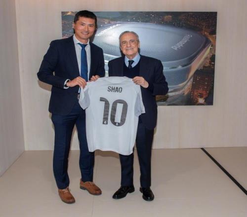 國足主帥邵佳一到訪皇馬,與弗洛倫蒂諾合影+獲贈10號球衣