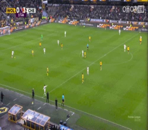 第38分鐘,庫庫助攻,帕爾默包抄破門完成戴帽,切爾西3-0領先狼隊!