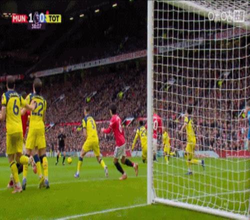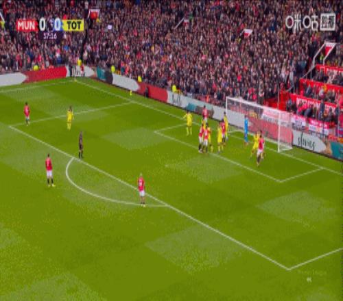 隨后梅努將球恰到好處橫傳至點球點位置,姆伯莫低射攻門,直指球門死角。而馬奎爾、肖與卡塞米羅三人合力牽制了熱刺所有上前封堵的球員。