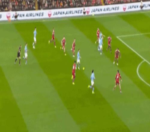 下半場開始后,場上風云突變,利物浦大舉壓上,曼城越踢越被動。