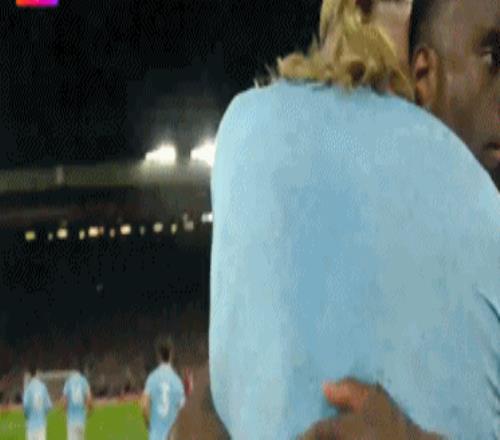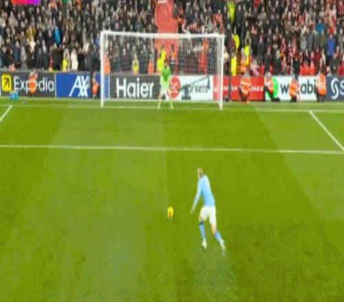 第91分鐘,阿利森撞倒努內斯,主裁判判罰點球,哈蘭德主罰點球一蹴而就,2比1!進球之后,哈蘭德脫掉球衣瘋狂慶祝。