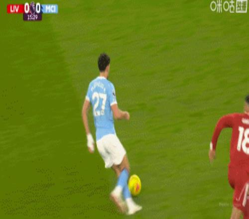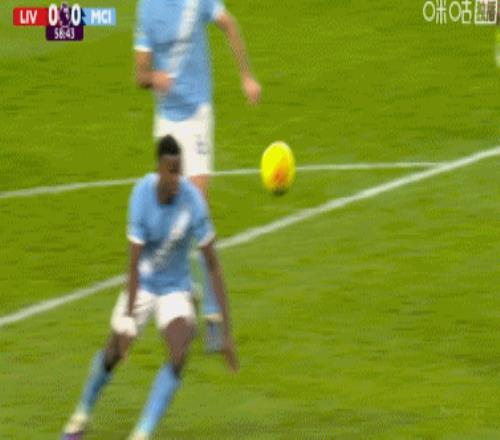 第13分鐘,羅德里遠射,皮球擊中隊友哈蘭德