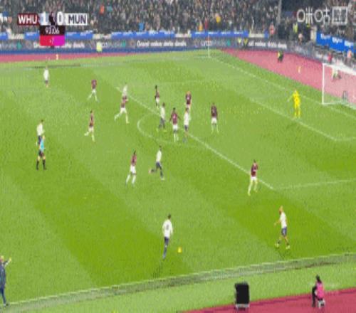第49分鐘,鮑文傳中橫掃門前,紹切克近距離搶點破門,西漢姆聯1-0曼聯。