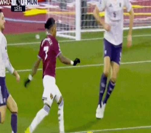 第63分鐘,達洛特右路橫傳,梅努45°傳中,落點恰到好處,卡塞米羅插上頭球破門。然而VAR介入之后顯示胖虎啟動的時候越位在先,曼聯空歡喜一場。