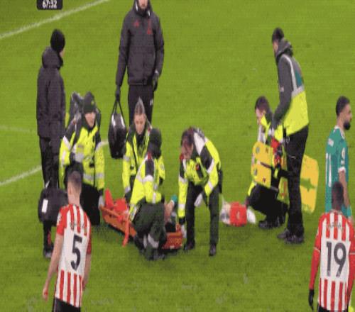 第64分鐘,遠藤航解圍后疑似拉傷,傷勢嚴重被擔架抬出球場,遠藤航掩面疑似落淚。