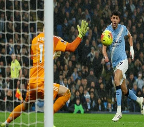第29分鐘,威爾遜在禁區(qū)內(nèi)的一腳低射被撲了出去。第30分鐘,曼城再次進(jìn)球。奧賴(lài)?yán)诮麉^(qū)左側(cè)小角度射門(mén)打進(jìn),送出助攻的是塞門(mén)約。9分鐘后,曼城又進(jìn)球了!福登把球分給禁區(qū)前沿的哈蘭德,哈蘭德停球后起腳低射,皮球鉆入球門(mén)右下角。曼城真是踢瘋了。第41分鐘,勞爾-希門(mén)尼斯單刀面對(duì)門(mén)將,但他的射門(mén)踢偏了。半場(chǎng)結(jié)束,曼城3-0領(lǐng)先富勒姆。
