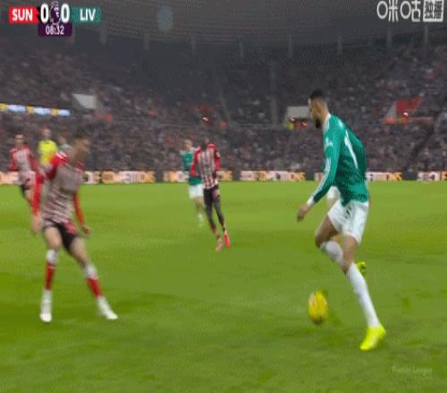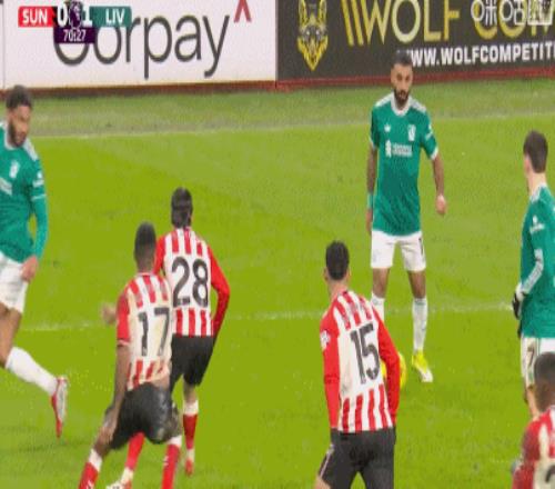 第90+6分鐘,瓊斯做球,薩拉赫迎球抽射打偏
