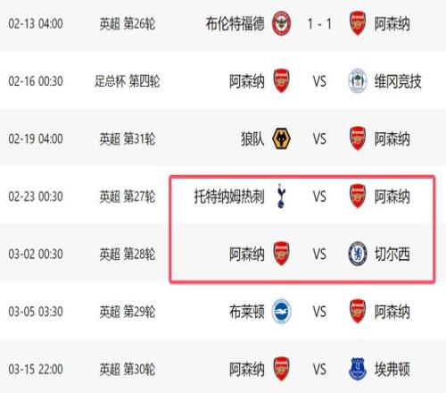 根據賽程安排,本周阿森納將出戰足總杯,下周中則提前進行第31輪的比賽,屆時他們將做客對陣狼隊,相信只要正常發揮,阿森納大概率能拿到3分。不過之后阿森納將面臨2場惡戰。第27輪比賽,阿森納就將做客對陣熱刺,之后將回到主場迎戰切爾西,短短7天之內,阿森納要進行2場德比大戰。其中熱刺剛剛換帥,下周末在主場肯定會死磕阿森納,阿爾特塔的球隊隨時又會丟分。至于切爾西,他們正搶分爭四,同樣不會讓阿森納輕松獲勝,這2場比賽一旦出現意外,阿森納將面對巨大的壓力。