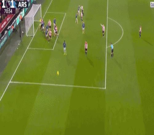 第61分鐘,阿森納界外球攻勢,卡約德解圍被斷,因卡皮耶左路下底傳中,馬杜埃凱搶點頭球吊射,凱萊赫鞭長莫及,阿森納打破僵局,1-0!
