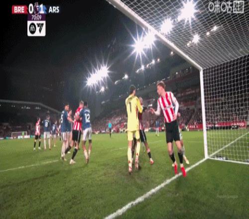 第71分鐘,布倫特福德亮出他們最致命的常規武器。大力邊線球擲入禁區,范登貝爾赫頭球擺渡,劉易斯·波特后點包抄。整個進攻過程耗時7秒,阿森納防線七人目送皮球破門的。