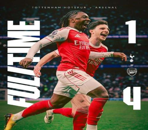 2球落后,圖多爾沒(méi)有猶豫立馬換上索蘭克、里沙利松和特爾做最后一搏;第83分鐘,斯彭斯右路一對(duì)一強(qiáng)行突破橫傳,里沙利松腳后跟嗑向球門,拉亞在皮球即將越過(guò)門線前將球撈回,熱刺險(xiǎn)些追回一球。第94分鐘,馬丁內(nèi)利積極反搶斷球,馬杜埃凱順勢(shì)分球,厄德高果斷直塞,哲凱賴什頂開格雷后捅射一樣梅開二度,4:1!最終在埃澤和哲凱雙雙梅開二度下,阿森納本賽季雙殺熱刺,第一次在英超對(duì)熱刺拿下4連勝;目前槍手多賽1場(chǎng)暫且領(lǐng)先曼城5分。