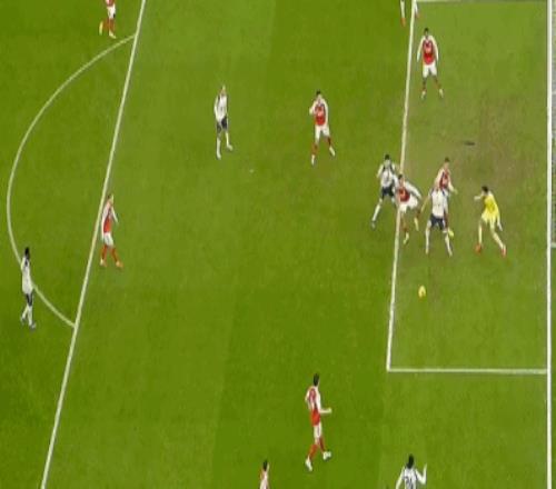 第37分鐘,賴斯送出精準長傳,薩卡插上單刀低射,維卡里奧出擊將球撲出。