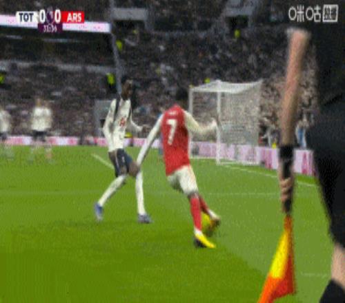 開(kāi)場(chǎng)第11分鐘,裁判設(shè)備出故障,比賽被迫暫停了5分鐘。這個(gè)小插曲像是給這場(chǎng)德比加了層戲劇濾鏡。第32分鐘,薩卡右路突破后倒三角回傳,埃澤中路包抄破門(mén),1-0。