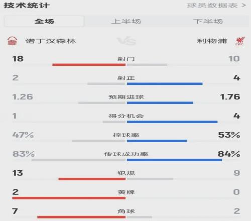 數(shù)據(jù)不會說謊:森林射門18-10,預(yù)期進球1.26-1.76,絕對機會1-4。