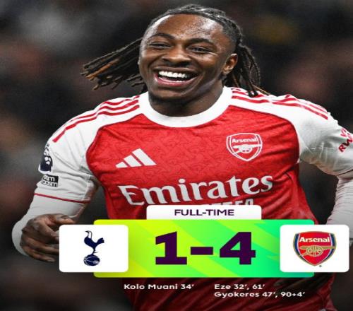 第90+4分鐘,槍手前場打出流暢配合,厄德高替補登場后迅速融入球隊,得球后送出精準直塞,禁區內的約克雷斯抗住對手防守,起腳爆射破門,4-1。約克雷斯完成梅開二度,將最終比分定格在4-1。全場比賽,阿森納控球率達到57.4%,射門數17次,射正數8次,危險進攻64次,各項數據均全面領先熱刺;而熱刺全場僅3次射門,預期進球不足0.1,禁區內觸球次數僅為阿森納的零頭,展現出雙方實力的巨大差距。阿森納全場完成11次攔截、16次成功搶斷,高位逼搶戰術貫徹始終,下半場的兩粒進球均源于快速反擊與前場壓迫,彰顯了阿爾特塔戰術理念的成功。