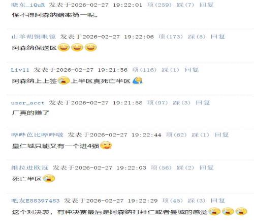 對此,國內球迷紛紛熱議阿森納的抽簽結果: