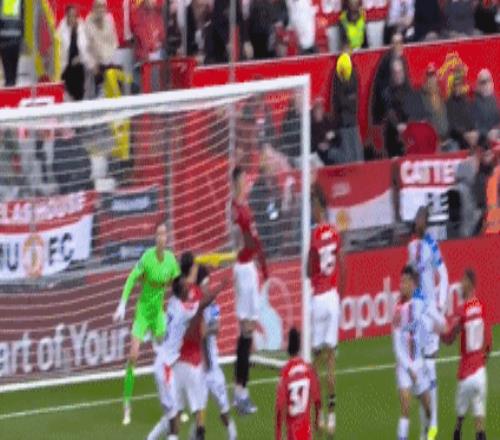 緊接著曼聯(lián)又獲得前場左路的定位球,B費傳中送到后點,卡塞米羅頭球頂偏。