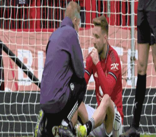 10分鐘后,曼聯再遭打擊,此前被穆尼奧斯踩到的盧克肖坐在草皮上,無奈搖頭無法堅持,馬茲拉維替補登場。