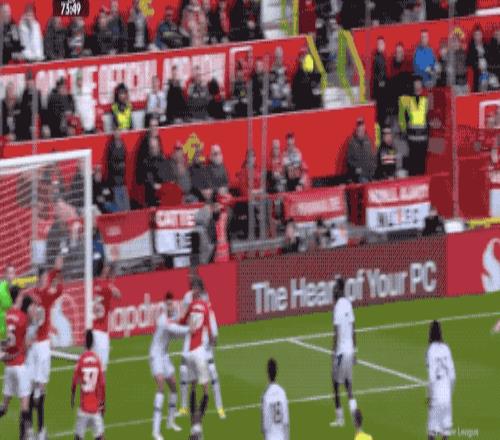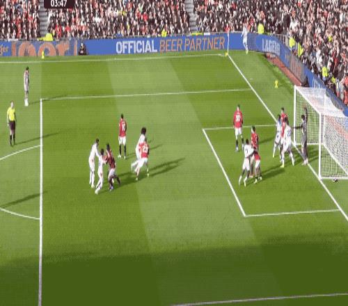 1分鐘后,曼聯再次拿到任意球,B費傳中,卡塞米羅獅子甩頭,將球頂偏。