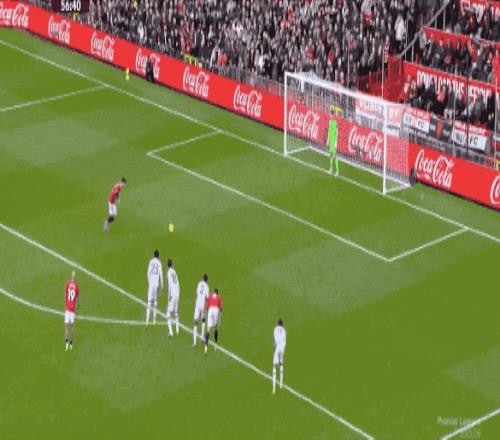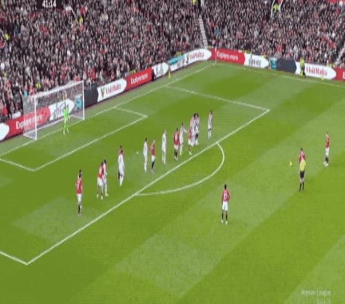 第42分鐘,廉田大地放倒姆伯莫,曼聯獲得前場位置不錯的任意球,B費的射門繞過人墻,昔日隊友亨德森飛身將球托出橫梁。