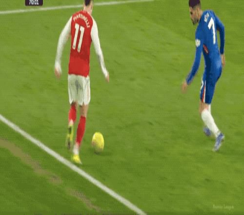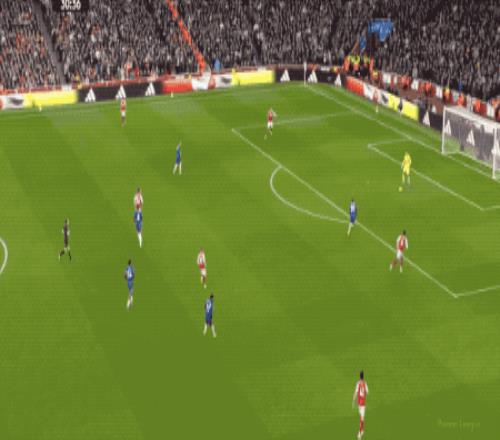 第37分鐘,約克雷斯反擊過程中選擇傳球,薩卡做球,廷貝爾虛晃一槍,但之后的射門綿軟無力。