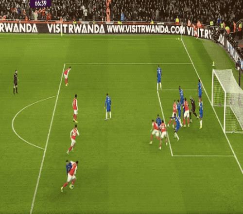 第45分鐘,切爾西獲得角球,拉亞被人群擠壓的情況下,反身完成撲救。這一次防守過程中,賴斯抱人+手肘觸球,切爾西球員投訴,裁判沒有任何表示。