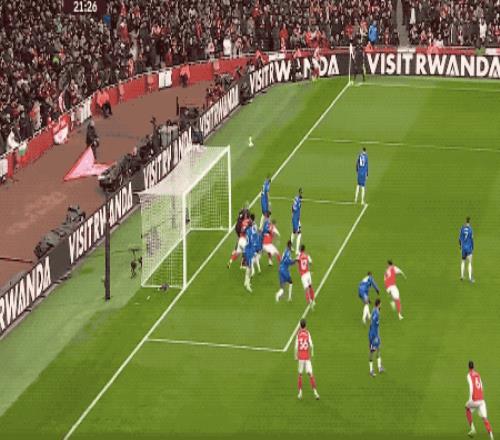 第50分鐘,薩卡強行擺脫后的射門被擋了一下,桑切斯雙拳將球擊出,薩利巴直接吊射,桑切斯將球沒收。