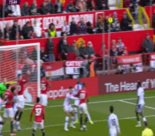 第53分鐘,庫尼亞突入禁區被拉克魯瓦拉倒。隨后VAR介入,主裁觀看回放確認拉克魯瓦破壞明顯進球機會,改判紅牌+點球。B費點射命中,曼聯1-1水晶宮。