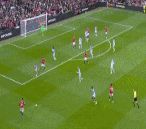 第4分鐘,水晶宮左側角球罰向禁區,約羅防守漏人,拉克魯瓦頭球攻門得手,水晶宮1-0曼聯。
