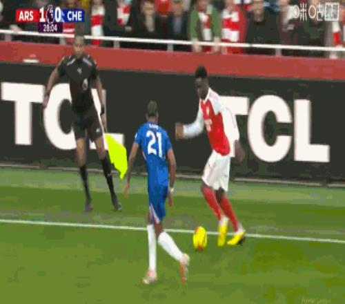 第59分鐘,帕爾默拉倒薩卡,被黃牌警告
