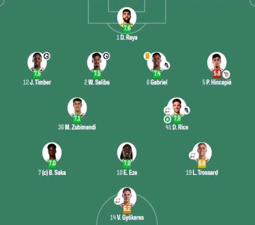 技術統計顯示,拉亞本場貢獻4次撲救,其中兩次為禁區內撲救,當選隊內最佳球員。加布里埃爾則憑借一次助攻和全場穩健的發揮,被英超官方評為全場最佳。
