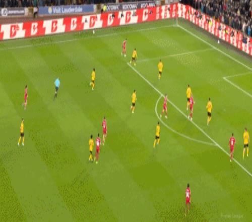 第90+4分鐘,阿利松出球不力,安德烈打門變線入網,狼隊2-1!
