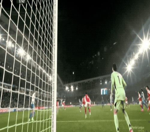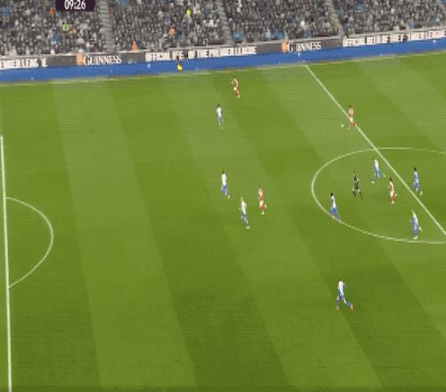 第29分鐘,阿森納獲得前場左側的任意球,賴斯高舉左臂,虛晃一槍直接射門,皮球稍稍高出。