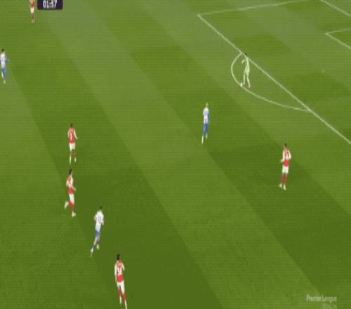第88分鐘,布萊頓造越位失誤,哈弗茨選擇自己小角度射門,維爾布魯根封住了近角。