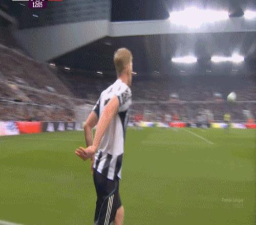 上半場前半段,紐卡打得相對較好的進攻,一次來自于界外球擲出后的45度角傳中打后點:
