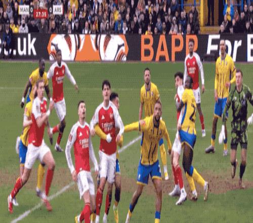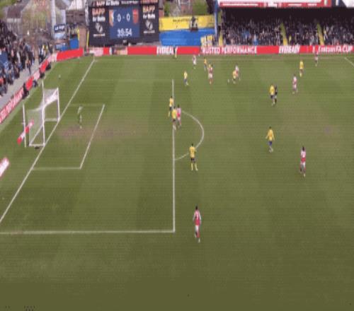 第28分鐘,阿森納獲得角球,馬杜埃凱選擇直接射門,皮球擊中了門柱和橫梁的交界處。