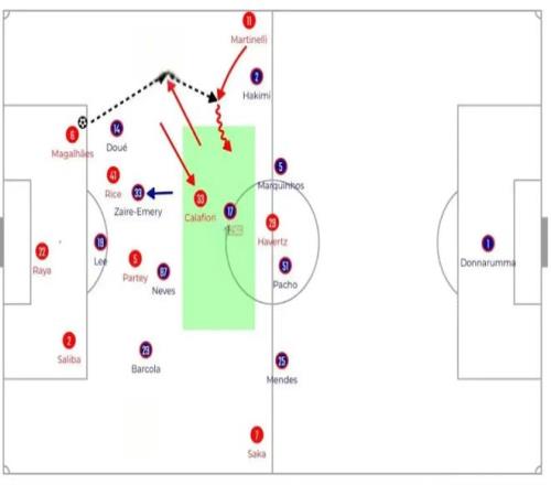 阿森納利用加布里埃爾在近門柱的優勢,他的頭球后蹭找到了在后點的特羅薩德,后者完成得分。富勒姆主帥馬爾科·席爾瓦賽后坦言,加布里埃爾“跳得太高,幾乎不可能阻止”。