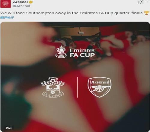 官方:阿森納在足總杯四分之一決賽中抽到了南安普頓,槍手將客場(chǎng)作戰(zhàn)。