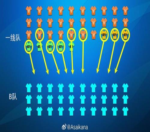 二者雖有交集,但并無強制綁定關系。B名單中的球員不一定進入B隊,A名單中的U21球員同樣可以進入B隊。