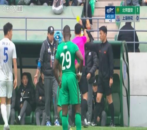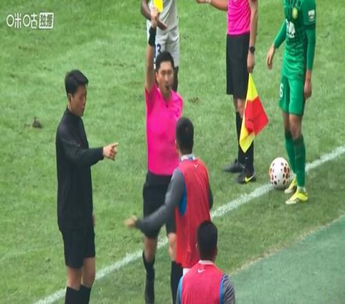這次錯判,并非只有申花主帥一人吃到黃牌,其實還有申花替補球員王世龍。他也因為對這個判罰表達了不滿,也吃到馬寧的黃牌一張(下圖)。王世龍先是感覺很無奈,裁判錯判了不僅不能表達異議,說了反而領(lǐng)到一張"黃寶石卡"。