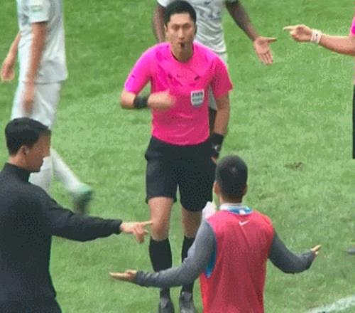 這下,中超的又一名場面出現(xiàn)了——面對中超“金哨”鐵面無私的怒指,這位前廣州隊后衛(wèi)不僅沒有馬上嚇退,反而一個轉(zhuǎn)身,背身就是一陣仰天狂笑(下圖),以此來表達心中的郁悶。