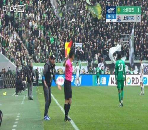 整體而言,這場比賽馬寧的判罰沒有多少瑕疵,唯一讓上海申花產(chǎn)生質(zhì)疑的就是上半場傷停補時階段的一次判罰。第45分鐘時,此時的申花0比1落后,年輕前鋒劉誠宇帶球到邊線附近,一個扣球往里時,邊裁舉旗示意皮球已經(jīng)出界,判給北京國安一個界外球。